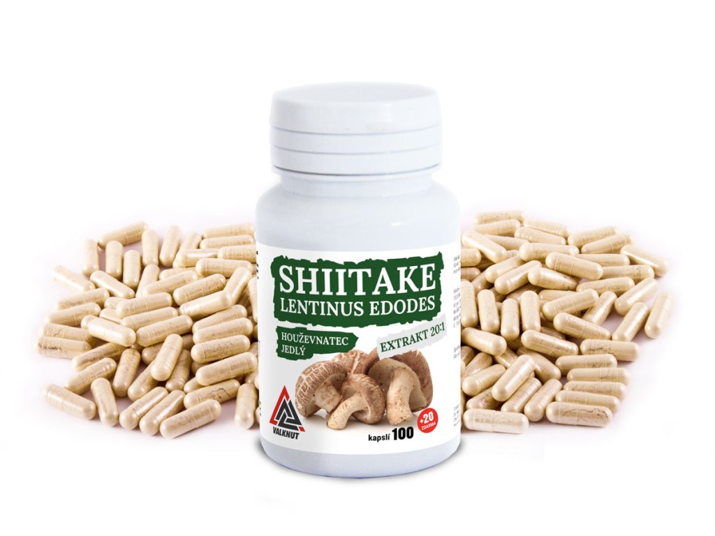 Shiitake je vysoko cenená prospešná huba s vysokým obsahom beta-glukánov (lentinan), eritadenínu a antioxidantov. V Číne a Japonsku sa konzumuje už 2000 rokov. Extrakt sa získava špeciálnou metódou dvojitej extrakcie z húb Shiitake, ktoré sa pestujú organicky na dubových kmeňoch.