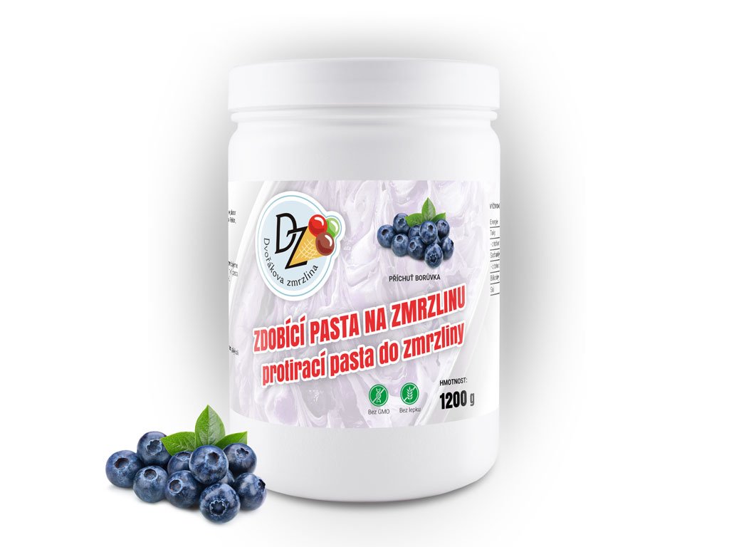 Zmrzlinová pasta príchuť čučoriedky. Pastu možno použiť na zdobenie zmrzlinových dezertov, ako sú torty, zákusky a zmrzlinové poháre. Môžete ju použiť na vytvorenie jednoduchých vzorov alebo na vytvorenie zložitých umeleckých diel.